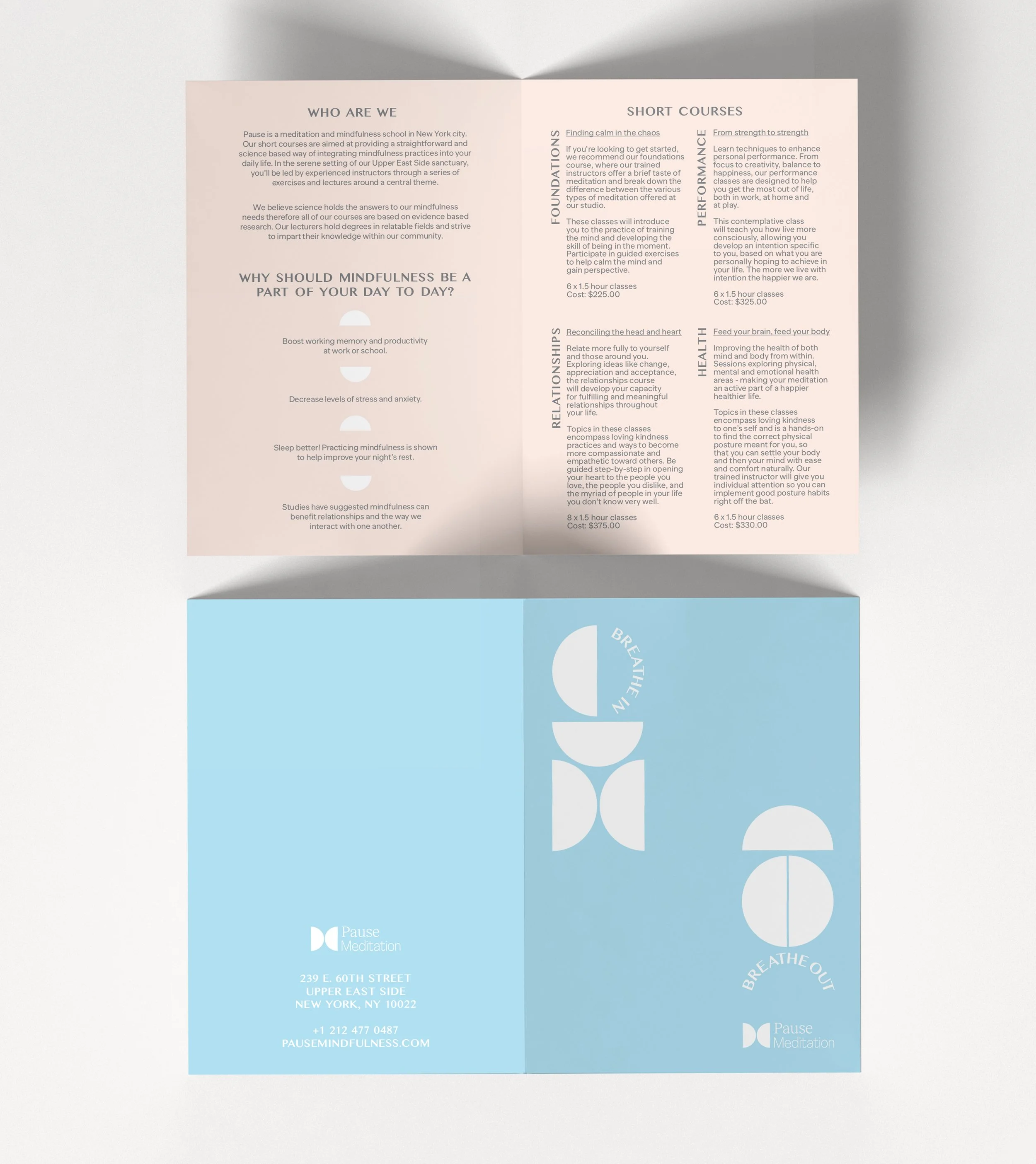 A quiet space for stressed New Yorkers who are looking for calming techniques that are backed by science. Drawing from the core ideas of finding balance in the modern world, this branding aims to create a serene equilibrium whilst embodying the gentle art of breathwork.